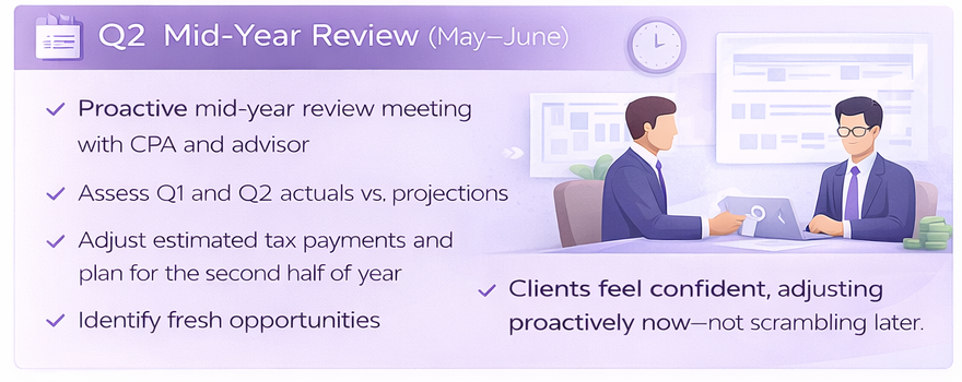 A year-round tax execution and planning service with a dedicated CPA team, predictable deliverables and cadence, and full advisor visibility at all times.